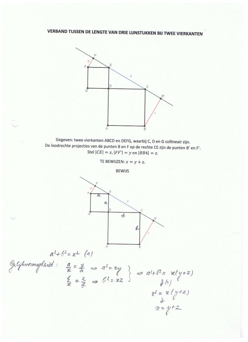 Verband tussen de lengte van drie lijnstukken bij twee vierkanten